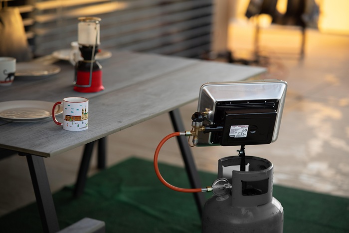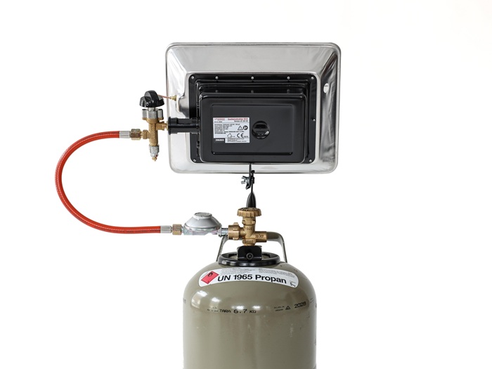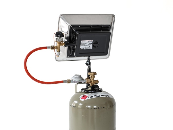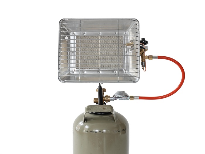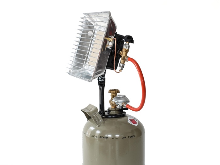 Gas-Aufsatz-Heizstrahler für 5 kg und 11 kg Propangasflaschen · Zündsicherung · robustes Metallgehäuse mit Schutzgitter · stufenlos regelbar · mit Thermosicherung