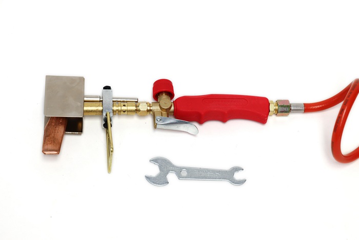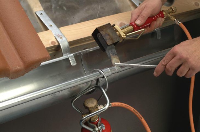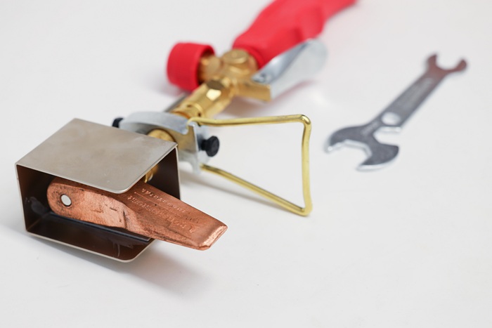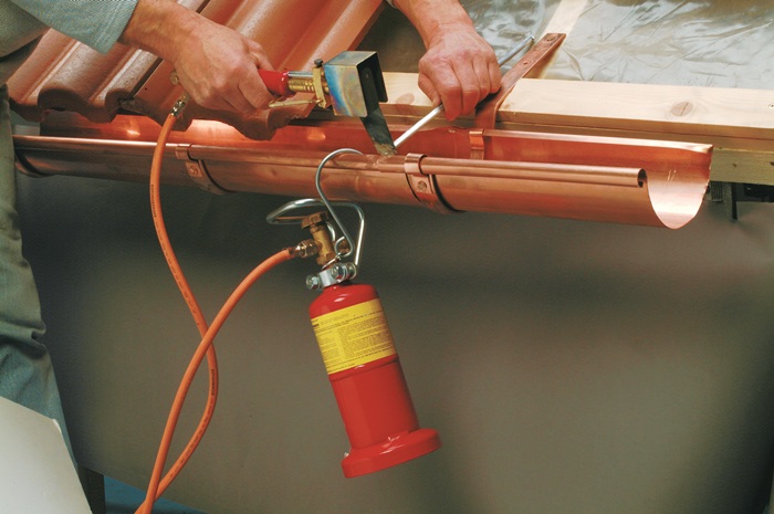 mit robustem Kolben aus Kupfer - erwärmt durch die Flamme und schmilzt das Lötzinn · mit Windschutz zur Verwendung auch bei schwierigen Arbeitsverhältnissen auf dem Dach oder dem Gerüst · ergonomischer Handgriff: einfache Einstellung der Flammengröße durch einen Drehregler · ideal zum Verbinden von Dachrinnen, Fallrohren aus Kupfer, verzinktem Stahl und Titanzinkblechen