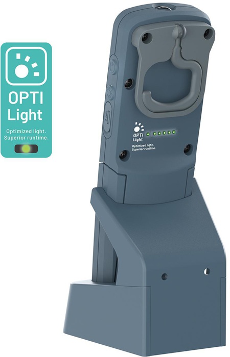 wiederaufladbare LED-Arbeitsleuchte mit Ladestation · die UNIFORM ist eine vielseitige und langlebige tragbare LED-Arbeitsleuchte · die wiederaufladbare LED-Arbeitsleuchte wird mit einer Ladestation zum bequemen Aufladen geliefert · die UNIFORM ist wasser- und staubdicht (IP65) und wurde für den Einsatz in rauen Arbeitsumgebungen entwickelt. · mit drehbarem Haken · ein starker eingebauter Magnet und ein Clip zur einfachen Befestigung an einem Arbeitsgürtel · der flexible Kopf der Handlampe kann um bis zu 180 Grad geneigt werden, so dass Sie die Lichtrichtung je nach Bedarf einstellen können · ausgestattet mit einem hocheffizienten Multi-LED-Design mit 32 LEDs und bietet eine leistungsstarke · einstellbare Lichtleistung von bis zu 500 Lumen · obere SPOT-Leuchte liefert einen fokussierten Lichtstrahl von 175 Lumen und ist damit ideal für verschiedene Inspektionsaufgaben · benutzerfreundliche Batterieanzeige sorgt zeigt den Batteriestand