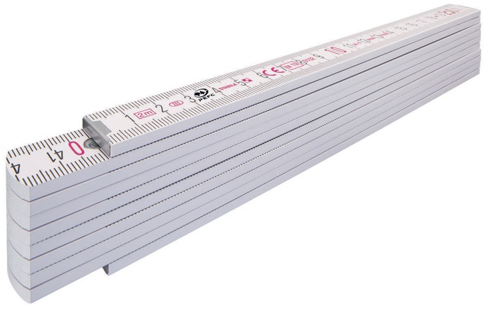 mit Anreißfunktion · hochwertiges Buchenholz · eingelassene, gehärtete Stahlblechgelenke mit integrierter Stahlfeder für Langlebigkeit und exaktes Einrasten · witterungsbeständiger Oberflächenschutz · große Ziffern für bessere Ablesbarkeit · rote Zehnerzahlen für schnelle Orientierung · schwarze Maßeinteilung mit klarem und deutlichem Druckbild · weiß lackiert · Fertigung aus nachhaltiger Waldbewirtschaftung (PEFC)