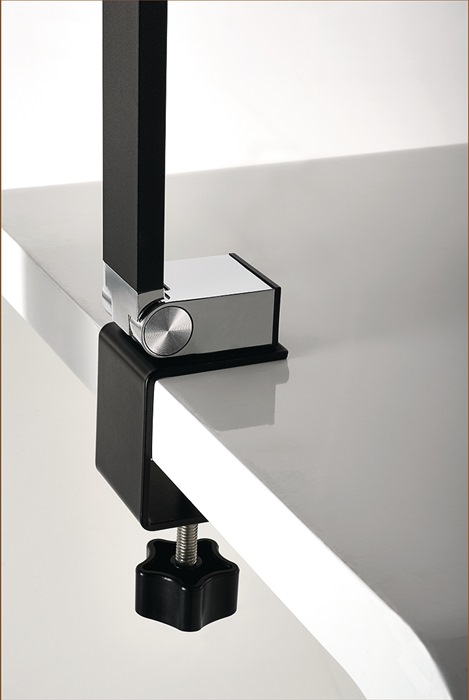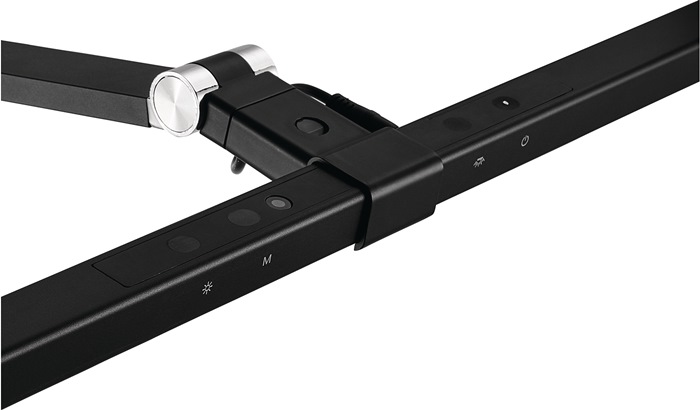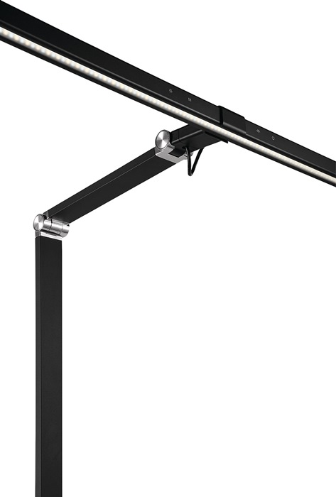 Aluminium/Kunststoff · mit Tischklemme · mit Reflektor 800 mm, über 3 Gelenke individuell verstellbar · Armlänge oben 175 mm - unten 480 mm, Höhe max. 720 mm · Bedienfeld am Leuchtenkopf (Touch-Funktion) · mit Lichtsensor (automatische Anpassung der Lichtintensität zur Umgebung), leuchtet den Arbeitsplatz vor dem Monitor perfekt aus · Betriebsspannung 230 V · Lichtfarbe 3.000/4.000 Kelvin - neutralweiß, 6.000 Kelvin tageslichtweiß · Lichtstrom 700 - 750 Lumen ∙ Lebensdauer 30.000 Stunden · gewichteter Energieverbrauch 11 kWh/1000h · Effizienzklasse F (Spektrum A bis G) · diese Leuchte enthält eingebaute LED-Lampen · die Lampen können nicht ausgetauscht werden