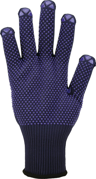 nach EN 388 · Kat. II · Material: blattiert, innen Baumwolle, außen Polyamid · mit rutschhemmender Punktbenoppung, blau · Fingerspitzenverstärkung · ausgezeichnete Passform · sehr gute Haltbarkeit · durch die Färbung auch für Schmutzbereiche geeignet · 13er Teilung