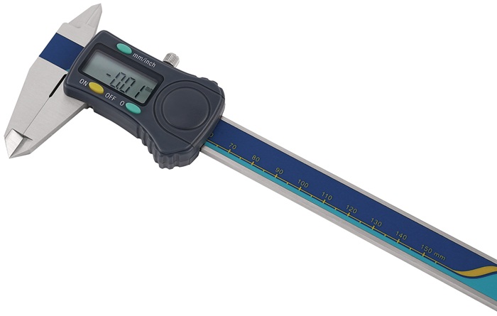 digital · gut ablesbar · Ziffernhöhe 8 mm · das kapazitive Messsystem liegt geschützt gegen Schmutz und Beschädigungen in der Messschiene · Schiene, Schnäbel und Spitzen gehärtet · Batterie-Kontrollanzeige · für Innen-, Außen- und Tiefenmessung · mit Feststellschraube · Nullpunktsetzung an jeder Stelle · Elektronik schaltet nach ca. 5 Minuten nach Nichtgebrauch eigenständig ab