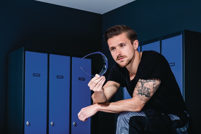 EN 166, EN 170 · hochschlagzähe Polycarbonatscheibe, dauerhaft beschlagfrei · top moderne Schutzbrille 2-Komponenten-Technologie: exzellenter Tragekomfort durch perfekte Anpassung durch individuelle Scheibenneigungsverstellung