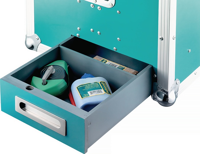 für die Holzbearbeitung / Zimmerei · abschliessbar · mit integrierten Rollen und Schublade für Kleinteile Detaillierte Inhaltsangabe siehe QR-Code