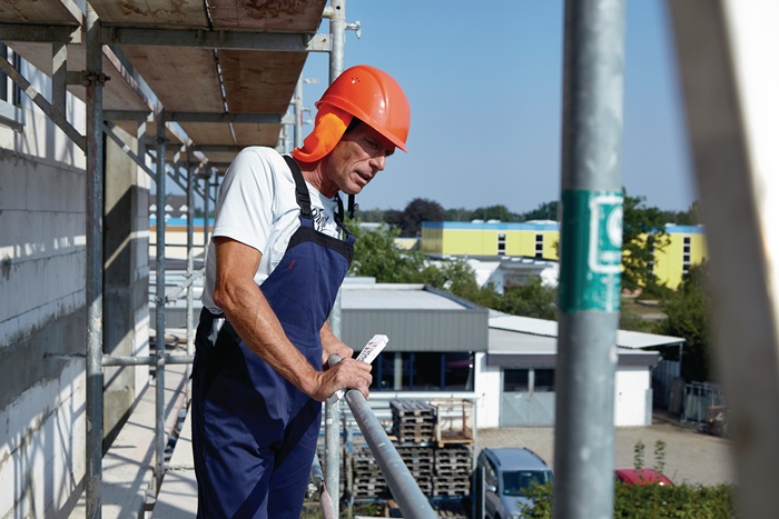 nach EN 397 · Zusatzprüfung Kälte (-20 °C) · aus Polyethylen · moderne Form · mit leicht im Nacken heruntergezogener Helmschale · seitliche Slots für Gehörschützer (30 mm) · 6-Pkt.-Gurtband-Innenausstattung mit Drehverschluss, umlaufendem Schweißband, Schaumstoffstreifen und montiertem Gabelkinnriemen · montierter, austauschbarer Nackenschutz · Größe 430x220mm UV-Schutzfaktor 50+ · Kopfumfang 51-64 cm · Gewicht Helmschale ca. 250 g Haupteinsatzgebiete: Maststeiger, Gerüstbauer, Arbeiten in der Höhe (z.B. Offshore-Parks), Baustellen und Industriebetriebe