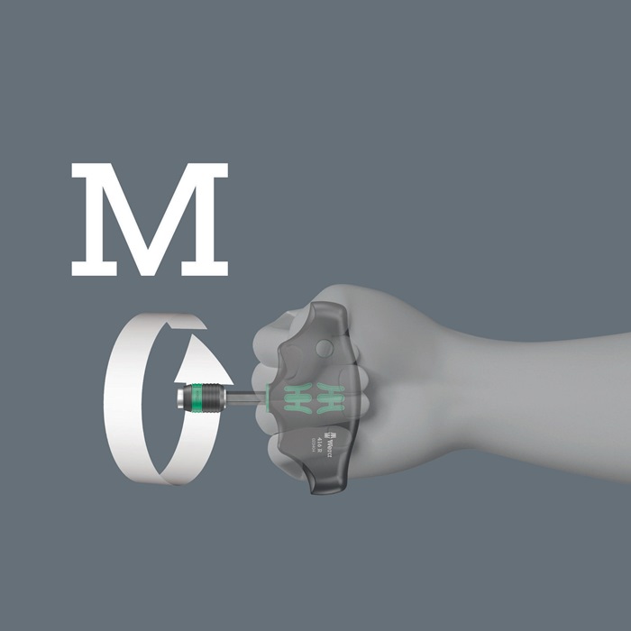 Quergriff-Schraubendreher: Die ideale Griffform ermöglicht die Übertragung besonders hoher Anzieh- und Lösemomente. Die ergonomische Form des Griffs füllt den Handballen gut aus · die Finger liegen sicher in den weich gerundeten Griffmulden. Die ganze Hand findet Kontakt zum Griff und Reibungsverluste zwischen Hand und Griff werden vermieden. Bithalter für Bits mit 1/4″ Außensechskantantrieb nach DIN ISO 1173-C 6,3 und E 6,3. Mit Rapidaptor-Technologie für blitzschnelles Wechseln der Bits. Vorteile: Quergriff-Schraubendreher zur Übertragung besonders großer Anzieh- und Lösemomente. Ergonomischer 2-Komponenten Griff mit Fingergriffmulden und angenehmer Haptik für sehr hohe Kraftübertragung und ermüdungsfreies Arbeiten. Mit Rapidaptor-Technologie für blitzschnelles Wechseln der Bits. Bithalter in magnetischer Ausführung zum leichteren Ansetzen der Schrauben. Für Bits mit 1/4″ Außensechskantantrieb nach DIN ISO 1173-C 6,3 und E 6,3. Quergriff-Schraubendreher: Die ideale Griffform ermöglicht die Übertragung besonders hoher Anzieh- und Lösemomente. Die ergonomische Form des Griffs füllt den Handballen gut aus · die Finger liegen sicher in den weich gerundeten Griffmulden. Die ganze Hand findet Kontakt zum Griff und Reibungsverluste zwischen Hand und Griff werden vermieden. Bithalter für Bits mit 1/4″ Außensechskantantrieb nach DIN ISO 1173-C 6,3 und E 6,3. Mit Rapidaptor-Technologie für blitzschnelles Wechseln der Bits.
