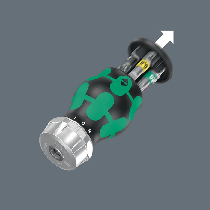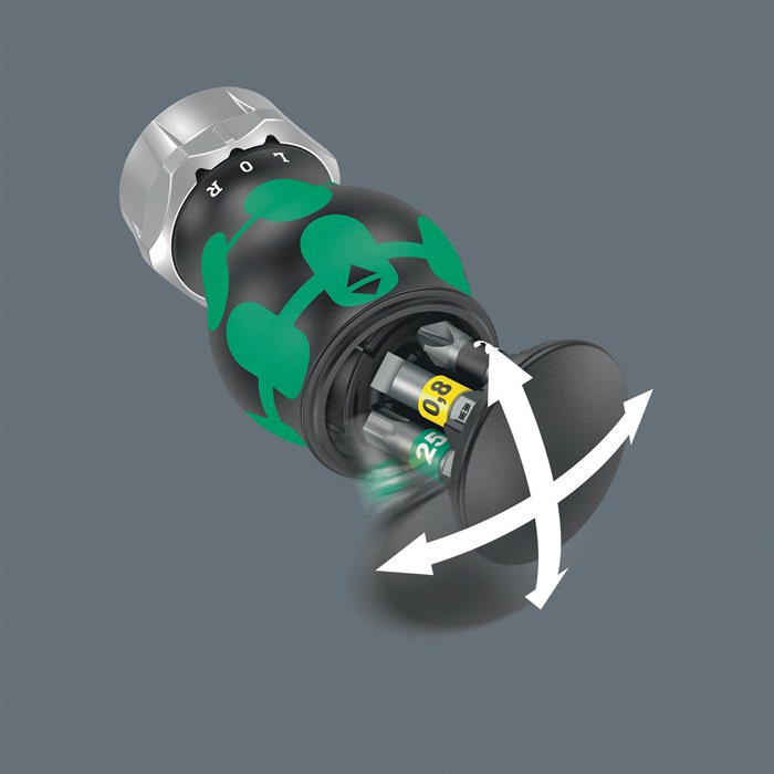 die im Griff integrierte Ratsche mit Feinverzahnung sorgt für schnelles Arbeiten · die innovative Ratschenmechanik ermöglicht einfaches „Zwirbeln“ · ein echter Problemlöser bei fehlendem Widerstand der Schraube · intuitives Umschalten: Schalte ich nach rechts – schraube ich nach rechts, schalte ich nach links – schraube ich nach links · integriertes Bit-Magazin mit 6x 25 mm Bits · BiTorsion Bits für lange Lebensdauer · mit Werkzeugfinder Take it easy: Farbkennzeichnung nach Profilen und Größenstempelung