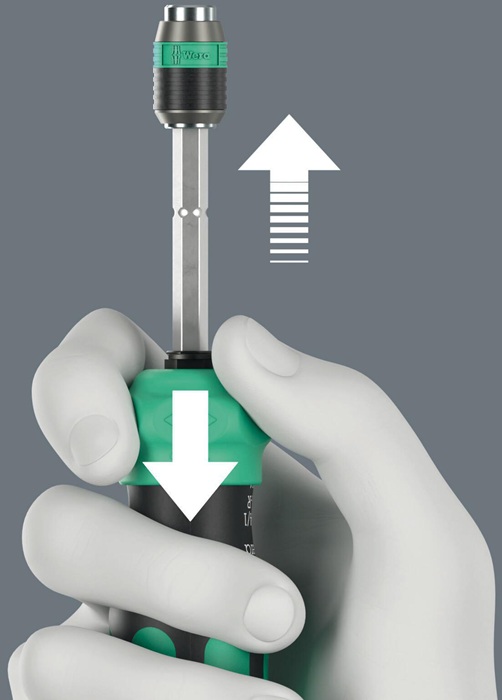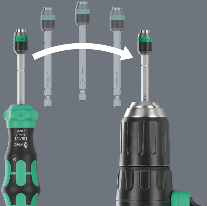 geeignet für Bits mit 1/4″-Außensechskantantrieb nach DIN ISO 1173-C 6,3 und E 6,3 und Wera Anschluss-Reihen 1 und 4 · im Griff integrierte Ratsche mit Feinverzahnung, intuitives Umschalten · für präzise Arbeiten kann die Ratschenmechanik mit der 0-Position deaktiviert werden · 1/4″-Innensechskantaufnahme, magnetisch · Verbindungsteil · Teleskopklinge · Rapidaptor-Technologie mit rapid-in, rapid-out, rapid-spin, chuck-all und single-hand-Funktion · 6 BiTorsion Bits für lange Lebensdauer, zähhart, für den universellen Einsatz · Take it easy Werkzeugfinder: Mit Abtrieb-Farbkennzeichung und Größenstempel für einfaches Finden des gewünschten Bits · Kraftform-Griff mit Abrollschutz, mehrkomponentig, integriertes Magazin