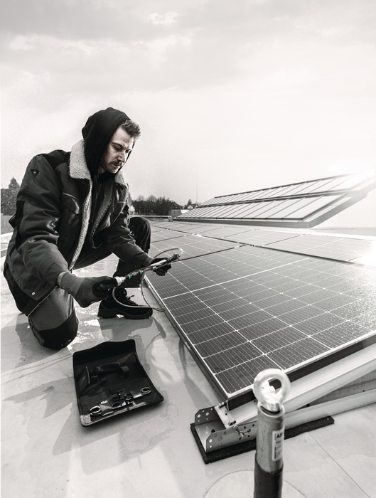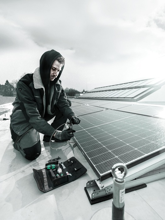 7-teiliges Werkzeug-Set für die Montage von Photovoltaik-Anlagen. 1 Drehmomentschraubendreher 7442 (Pistolengriff) für den Messbereich 3,0-6,0 Nm. Numerische Drehmomentwert-Anzeige. Verlässliches Überrutschen und akustisches Signal bei Erreichen des eingestellten Drehmoments. 1 Rapidaptor Bithalter 889/4/1 F mit Freilauffunktion für besonders schnelle Rückholbewegung ohne lästiges Absetzen beim Rechtsanzug. 1 Ringmaulschlüssel 6003 Joker. Durch die spezielle Maulgeometrie werden die Ansetzmöglichkeiten des Werkzeugs erweitert · damit ist der Ringmaulschlüssel besonders für enge Bauräume geeignet. 2 Montageschlüssel für Solar-Stecker MC4 (Multi-Contact). 1 Steckschlüsseleinsatz 1/2″ (geschlitzt) Gr. 17 für die Montage von Einbausteckverbindern · 1 Werkzeugschaft (Adapter 1/4″ auf 1/2″) für handbetätigte Steckschlüsseleinsätze. Vorteile: Schraubwerkzeug-Set für die Installation von Photovoltaik-Anlagen. Inklusive 2 Montageschlüssel 9108 für Solar-Stecker MC4 (Multi-Contact). Inklusive Drehmomentschraubendreher 7442 (3,0-6,0 Nm) mit Pistolengriff. Inklusive Rapidaptor Bithalter 889/4/1 F mit Freilauffunktion für besonders schnelle Rückholbewegung ohne lästiges Absetzen beim Rechtsanzug. Inklusive Joker Ringmaulschlüssel 6003 · besonders geeignet für enge Bauräume · die spezielle Maulgeometrie erweitert die Ansetzmöglichkeiten des Werkzeugs. Inklusive 1/2″ Steckschlüsseleinsatz (geschlitzt) Gr. 17 für die Montage von Einbausteckverbindern. Inklusive Werkzeugschaft 870/4 (Adapter 1/4″ Sechskant auf 1/2″ Vierkant) für handbetätigte 1/2″ Steckschlüsseleinsätze. 7-teiliges Werkzeug-Set für die Montage von Photovoltaik-Anlagen. 1 Drehmomentschraubendreher 7442 (Pistolengriff) für den Messbereich 3,0-6,0 Nm. Numerische Drehmomentwert-Anzeige. Verlässliches Überrutschen und akustisches Signal bei Erreichen des eingestellten Drehmoments. 1 Rapidaptor Bithalter 889/4/1 F mit Freilauffunktion für besonders schnelle Rückholbewegung ohne lästiges Absetzen beim Rechtsanzug. 1 Ringmaulschlüssel 6003 Joker. Durch die spezielle Maulgeometrie werden die Ansetzmöglichkeiten des Werkzeugs erweitert · damit ist der Ringmaulschlüssel besonders für enge Bauräume geeignet. 2 Montageschlüssel für Solar-Stecker MC4 (Multi-Contact). 1 Steckschlüsseleinsatz 1/2″ (geschlitzt) Gr. 17 für die Montage von Einbausteckverbindern · 1 Werkzeugschaft (Adapter 1/4″ auf 1/2″) für handbetätigte Steckschlüsseleinsätze