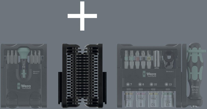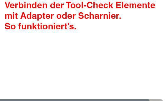 flexibles Scharnier für das Tool-Check Modular-System · ermöglicht eine flexible Verbindung von zwei Tool-Check Modular Elementen · die verbundenen Elemente können kompakt zusammengeklappt werden
