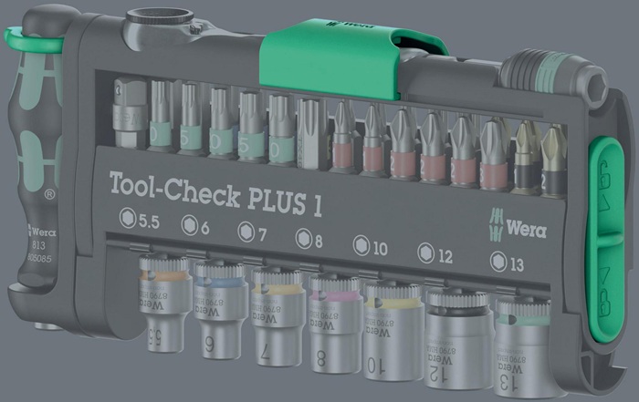 für Hand- und Maschinen-Einsatz · perfekt für unterschiedlichste Verschraubungen mit Zyklop Mini mit 1/4″ Bitaufnahme, Hand- oder Bithalter · grüne Verriegelungselemente zur Sicherung der Werkzeuge · ideal für den mobilen Einsatz