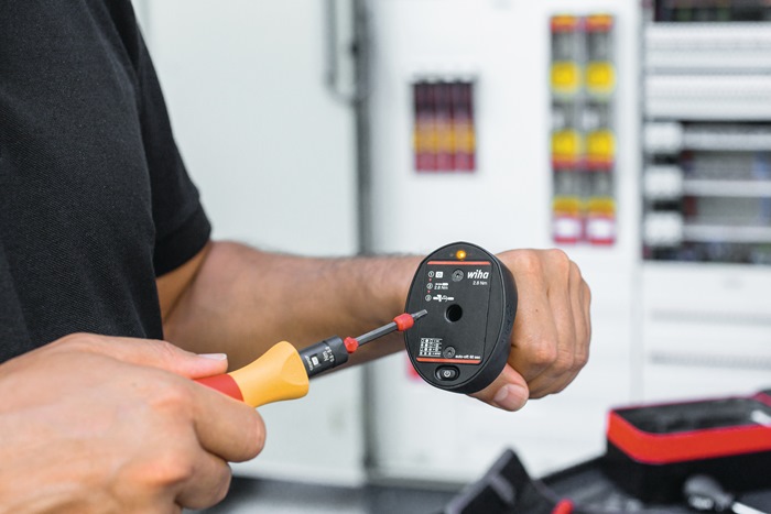 geeignet für alle Wiha Drehmomentschraubendreher, die sich auf den Prüfwert 2,8 Nm einstellen lassen · Prüfergebnisanzeige über eine Ampelsymbolik